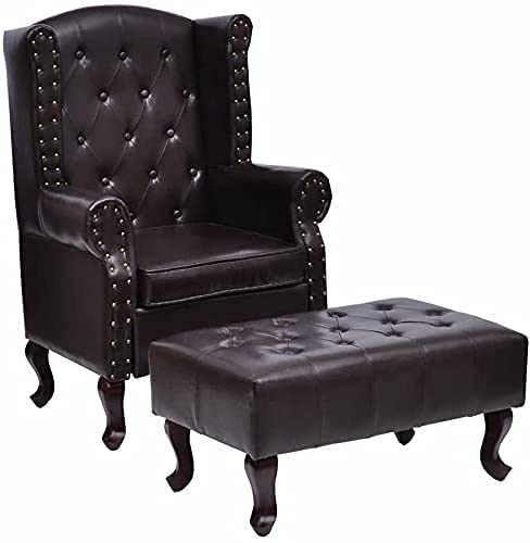 A to Z Furniture Leatherette ufted Wing Chair for Living Room Bedroom High Back Arm Chair Cushioned Lounge Chair Single Seater Sofa |Luxury Rest Chair Arm Chair with Footrest Stool (Dark Brown)