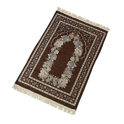 Trendy Retail Portable Polyester Muslim Prayer Rug Ramadan Tassel Carpet Mat Dark Brown ₹4,374.11
