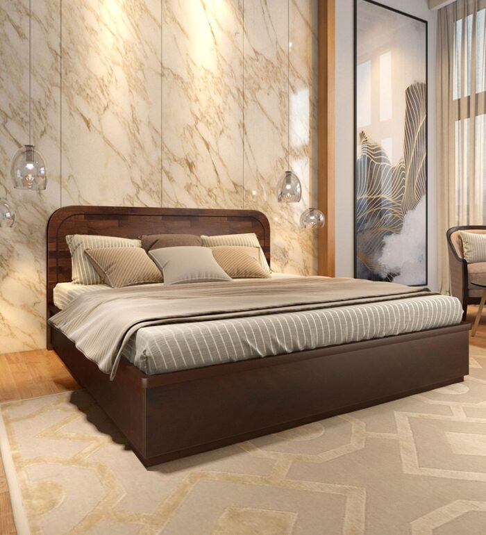Bolton Queen Size Bed with Hydraulic Storage In Brown Finish