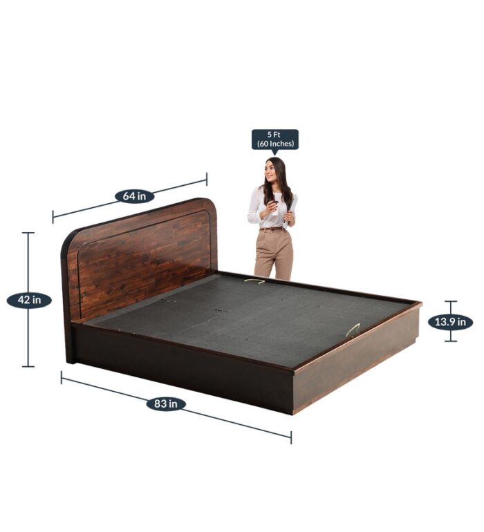 BrandDurianDimensions(In Inches)H 42 x W 64 x D 83Weight135 KGWarranty5 Years’ WarrantyAssemblyCarpenter AssemblyPrimary MaterialAcacia WoodRoom TypeBedroomStorageHydraulic StorageSeating Height13.9Recommended Mattress Size78 L x 60 W InchProduct Rating5Dimensions (In Centimeters)H 106.7 x W 162.6 x D 210.8