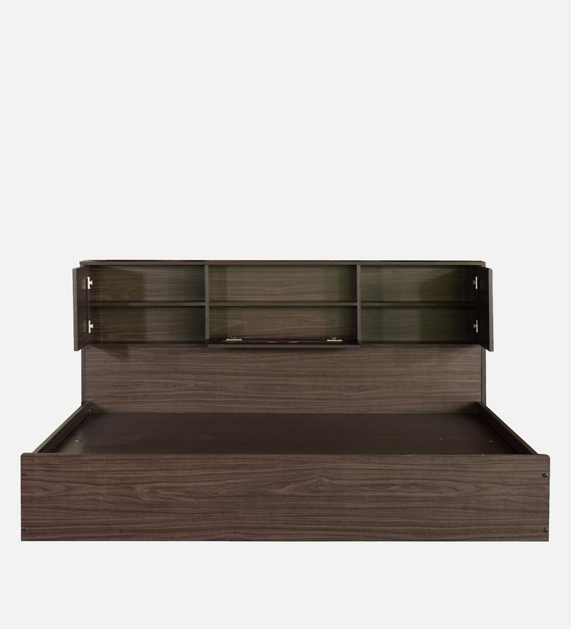 Hideki Blackline King Size Bed With Box Storage In Walnut Finish