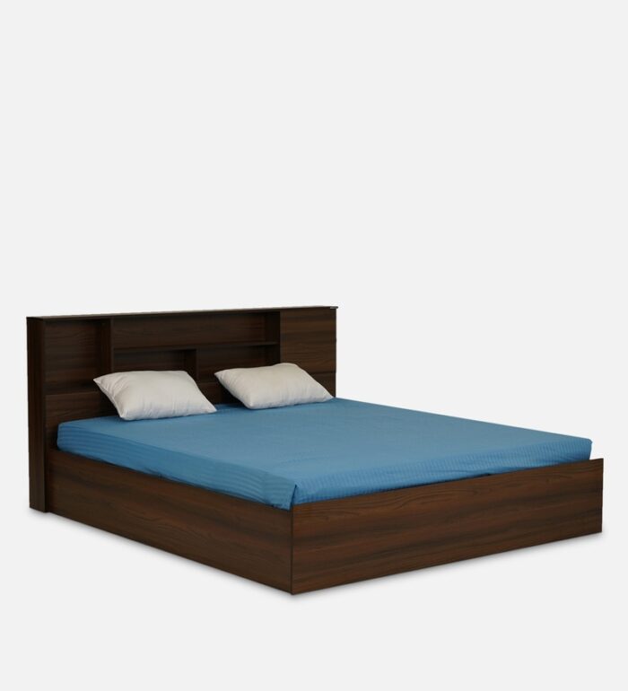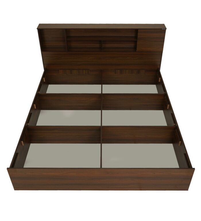 Specification GeneralBed made of Particle Board. Box storage in the bed. Head Board contain storage for keeping small things. Mattress size for King bed-78 x72Disclaimers:Accessories shown in the image are only for representation and are not part of the product.Depending on your screen settings and resolution on your device there may be a slight variance in fabric color and wood polish of the image and actual product.Wood grains will vary from product to product .Furniture having intricate hand-painted details are individual unique pieces and may have slight distinctions and variance between the picture and actual product.The Primary material is the main material used to manufacture the product and in addition to the primary material there might also be other type of materials used in the manufacturing of the product