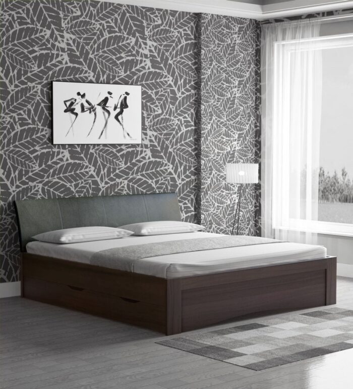 Shinju King Size Upholstered Bed Drawer Storage In Wenge Finish